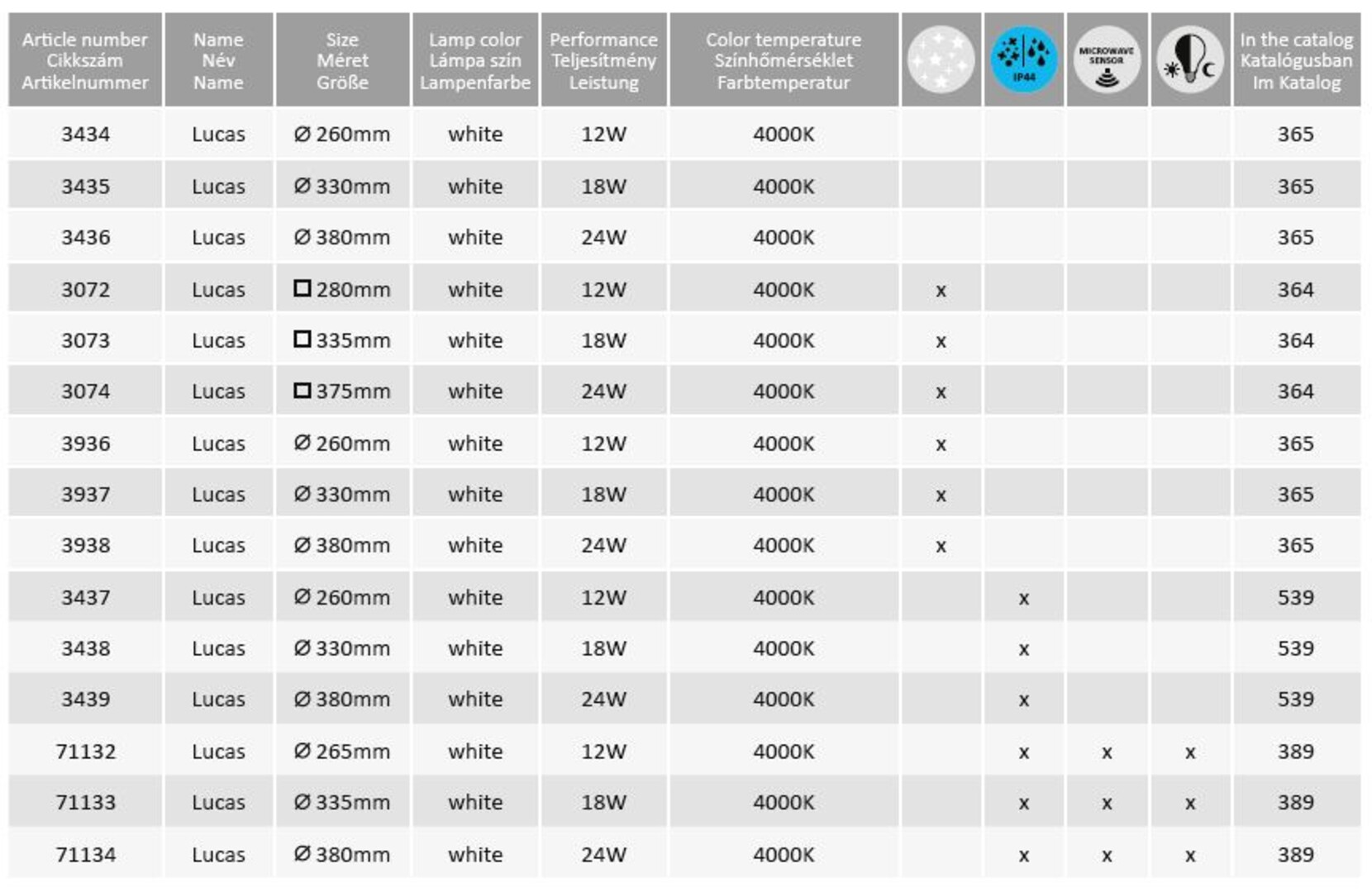Spécifications du luminaireLED 12W