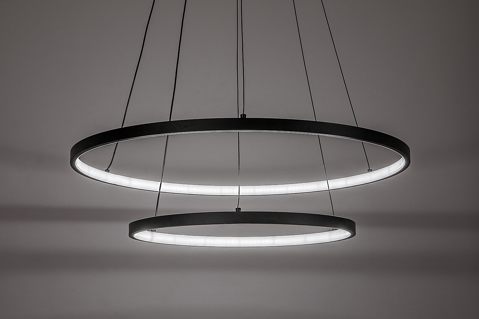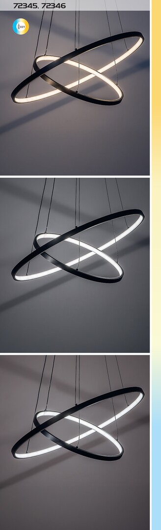 La suspension Rabalux Beliza à 2 ampoules est recommandée à ceux qui apprécient la fonctionnalité et le design créatif. Ce luminaire suspendu moderne se compose de deux éléments en forme d’anneau et est fabriqué en métal noir. Les deux anneaux, de diamètres différents, peuvent être orientés selon les préférences. La lumière est diffusée à l’intérieur des anneaux, et les ampoules sont en silicone blanc. La suspension est complétée par une base décorative ronde noire et des câbles métalliques de couleur argentée. Elle dispose d’une source lumineuse LED intégrée, garantissant un fonctionnement économe en énergie et une longue durée de vie. L’intensité lumineuse ainsi que la température de couleur peuvent être réglées à l’aide d’une télécommande. Cette suspension intelligente est également équipée d’une fonction veilleuse. Elle est idéale pour le salon, la salle à manger ou la chambre à coucher.
